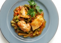 Οι μπάμιες σε συνδυασμό με το λευκό και ουδέτερο κρέας του κοτόπουλου, και μάλιστα στη γάστρα, μας δίνουν ένα από τα πιο γευστικά πιάτα του καλοκαιριού.