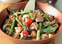 Τηγανιά κοτόπουλου με πολύχρωμα λαχανικά.