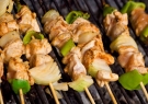 Βυθίζουμε τα ξύλινα καλαμάκια σε κρύο νερό για περίπου μισή ώρα, προτού ετοιμάσουμε τα σουβλάκια, ώστε να μην καούν ή να ξεφλουδίσουν κατά τη διάρκεια του ψησίματος. Εναλλακτικά, χρησιμοποιούμε μεταλλικές σούβλες που επαναχρησιμοποιούνται.