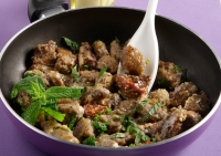 Διαλέγουμε φιλέτο από στήθος ή, προτιμότερο, από μπούτι κοτόπουλου που είναι πιο ζουμερό. Αν θέλουμε χοιρινό, ζητάμε ένα τρυφερό κομμάτι, χωρίς κόκαλο (από λαιμό, σπάλα, κιλότο ή πανσέτα). Το κρέας πρέπει να είναι κομμένο σε μικρά κομμάτια, κόντρα...