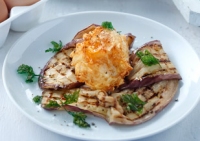 Φτιάχνουμε τραγανά αυγά ποσέ σε λάδι και τα σερβίρουμε με σοτέ μελιτζάνες. Τέλεια ιδέα!