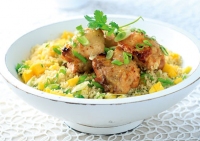 Κοτόπουλο αλειμμένο με μείγμα μουσταρδάς, μαρμελάδας και κυμίνου, συνοδεία κουσκούς και μάνγκο, έτοιμο σε μόλις 25΄.. Δεν ξέρεις τι χάνεις αν δεν το δοκιμάσεις!