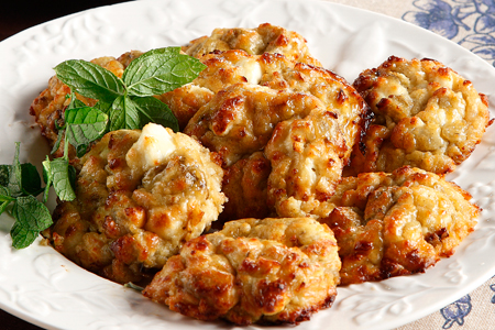 Οι ελιές Καλαμών δίνουν μια ξεχωριστή και πλούσια γεύση στα κεφτεδάκια.